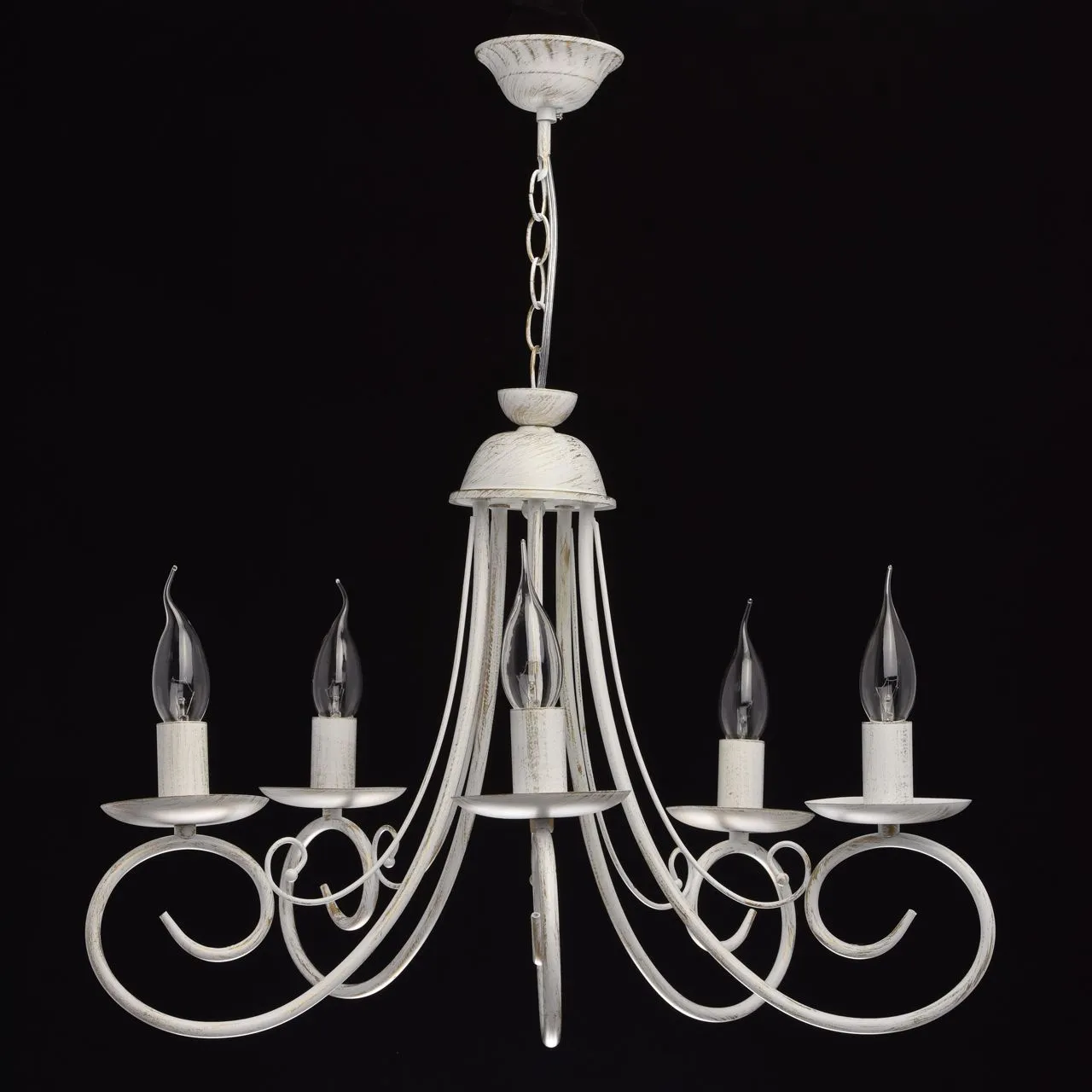 Металлическое основание матового белого цвета с золотистой патиной. Декор: металлические завитки бел